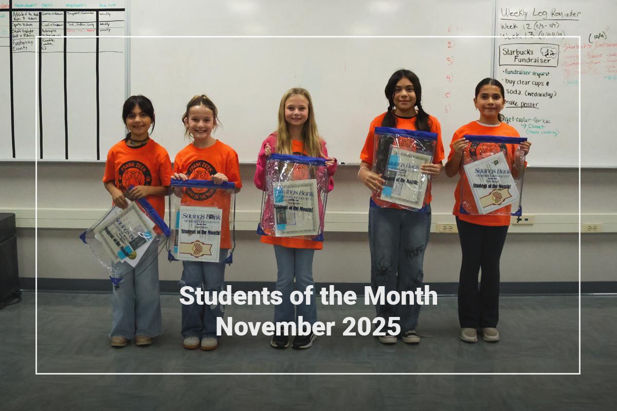 Congratulations to Frank Zeek’s Students of the Month: Olivia Castro, Hendrix Cosman, Brielle Locatelli, Eva Alvarez-Cervantes, and Lucia Marin. You inspire us every day!