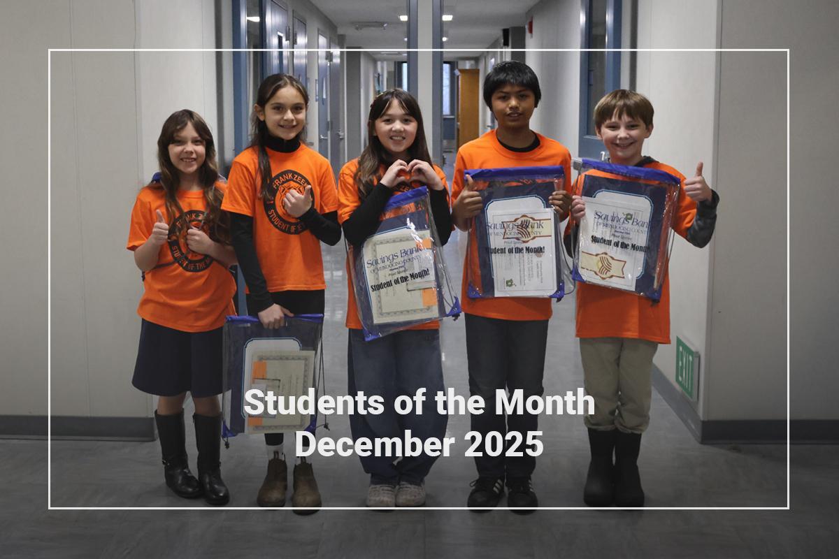 It’s time to shine a spotlight on our December Students of the Month at Frank Zeek! Join us in congratulating Linnea Aplet, Julieta Lopez, Miah Miller, Casey Benavente, and Thomas Corning for setting a great example for their peers. Well done!